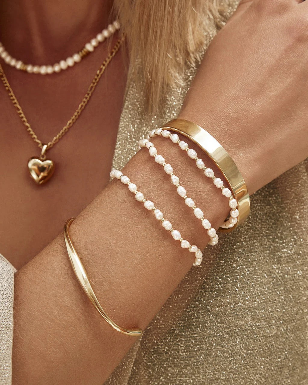 Classic and timeless with a modern twist, the Amber Bracelet features lustrous pearls paired with contrasting gold beads for effortless stacking. Add one of our easy-to-attach charms to make it uniquely yours and elevate your personalised style.